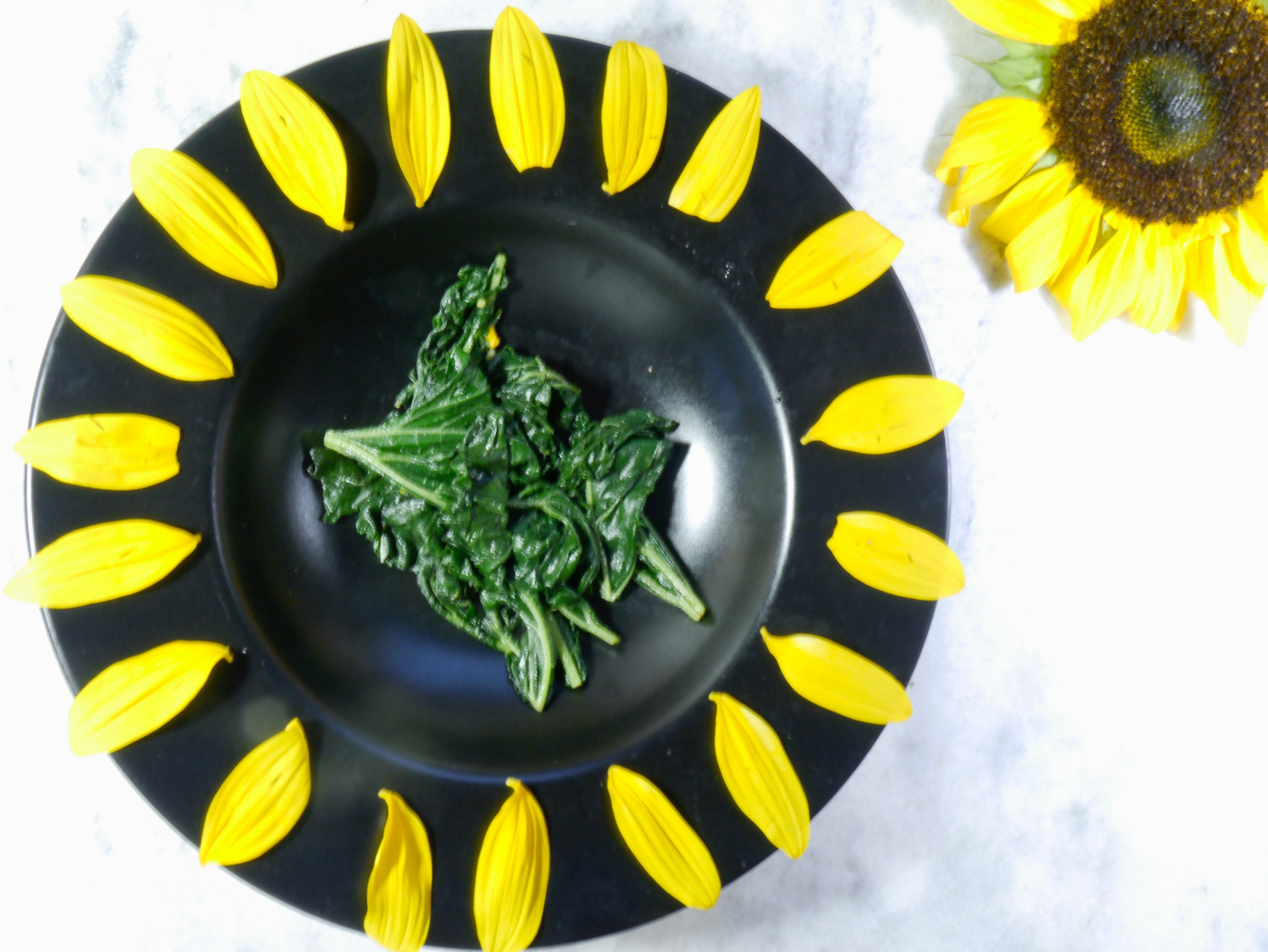 Sonnenblumenblättergemüse: Nie gehört. Dabei kann man sie tatsächlich essen, und zwar so ähnlich wie Spinat, in diesem Fall: Blattspinat. Oder als Sonnenblumensuppe.
